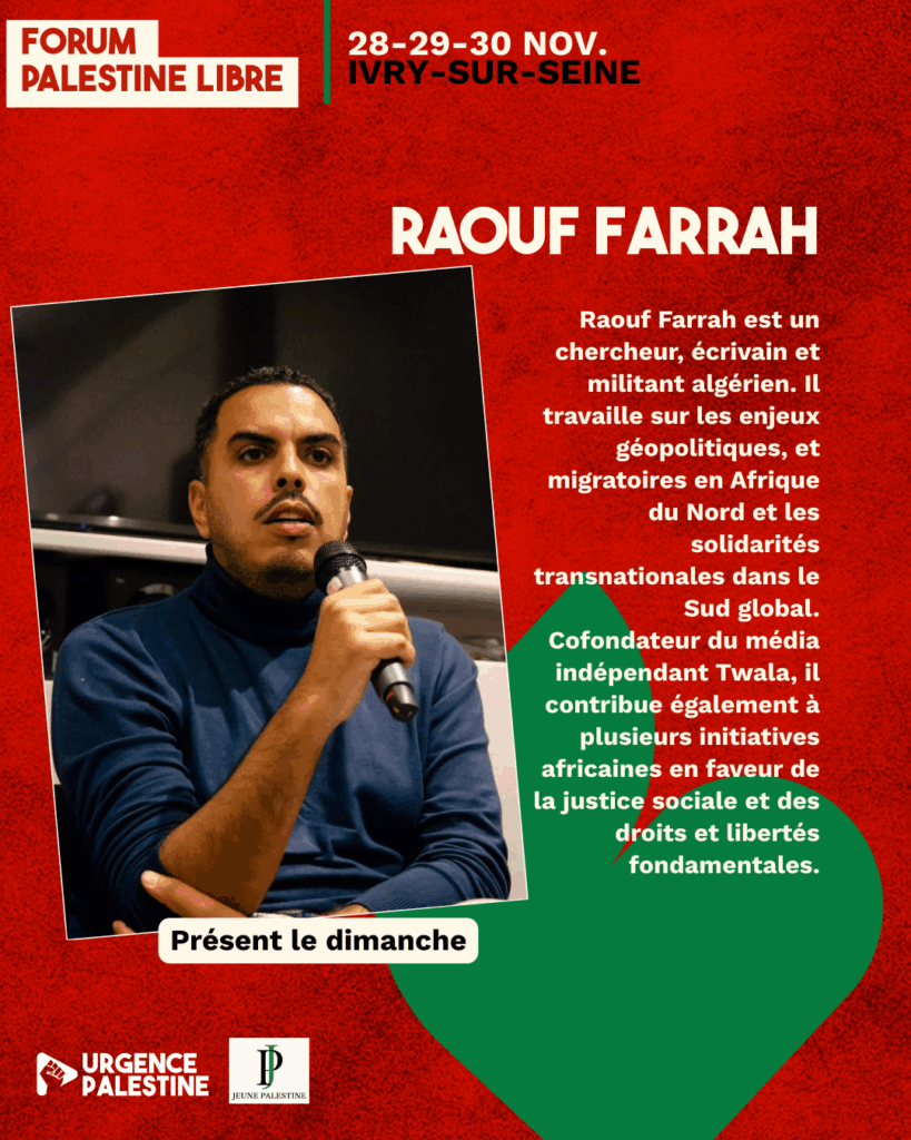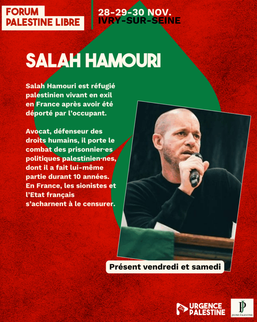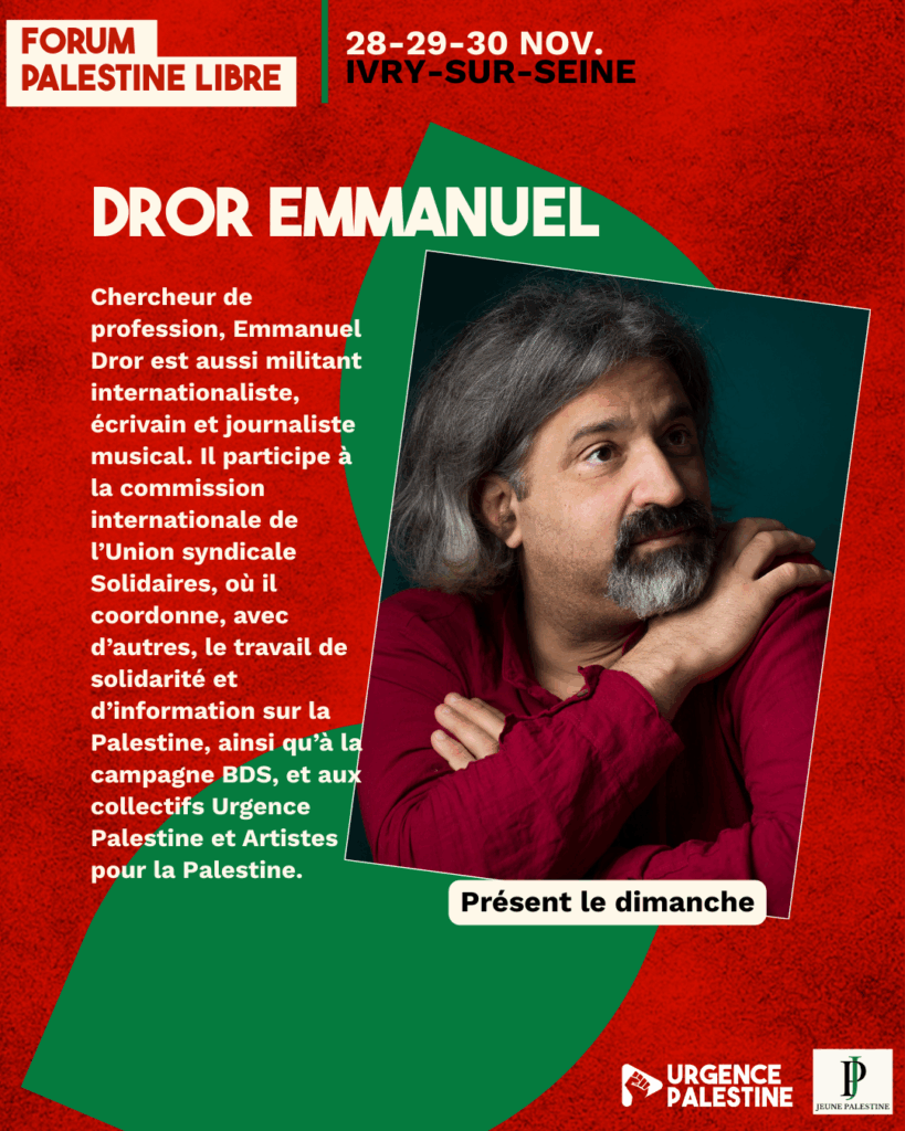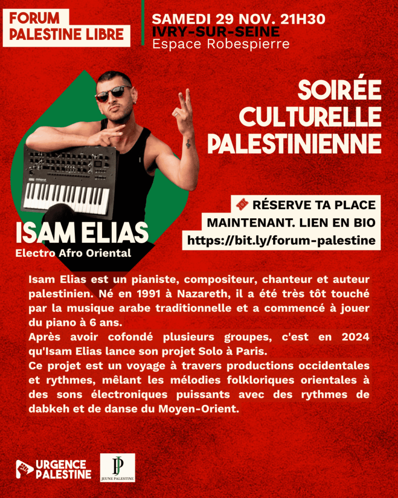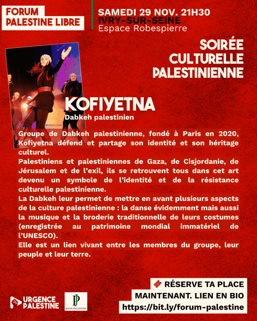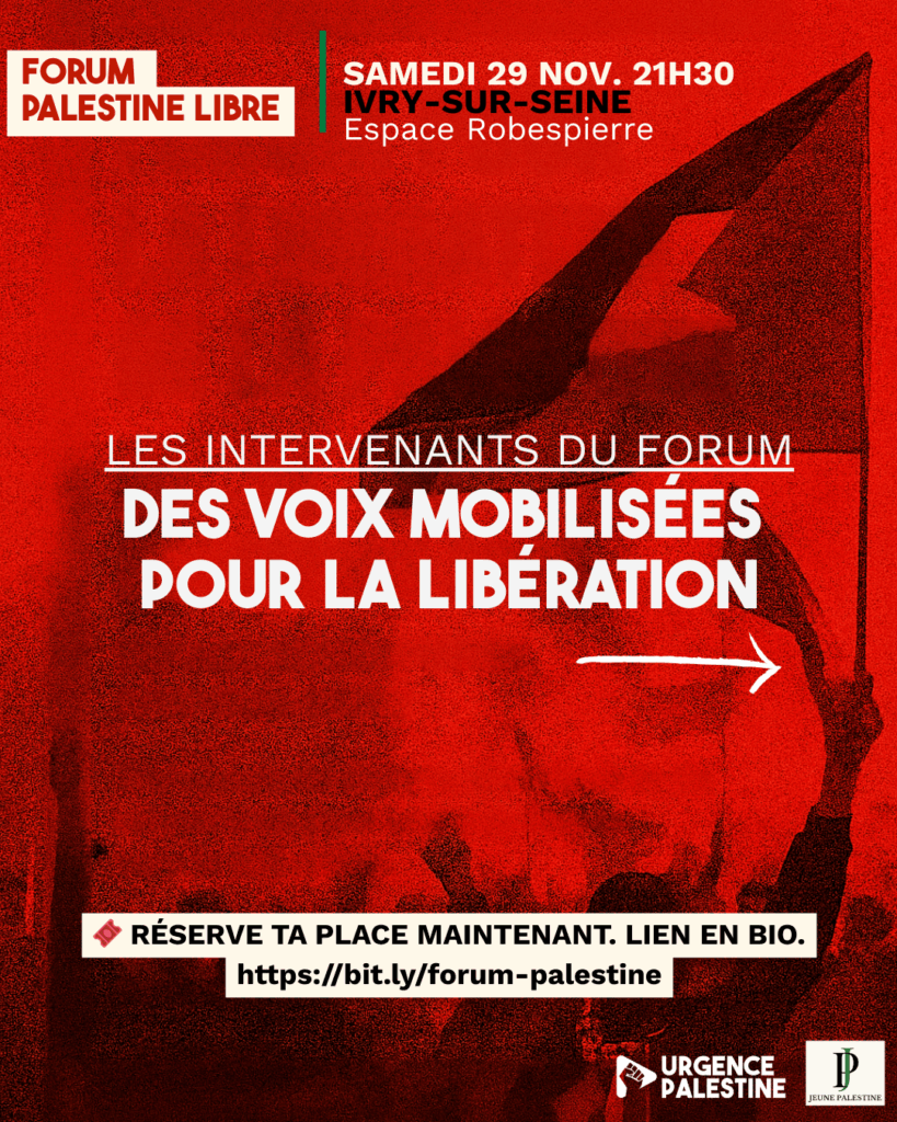 Lieu accessible PMR Accès transports : Métro Mairie d’Ivry / RER C Infos : forum.palestine.libre@proton.me