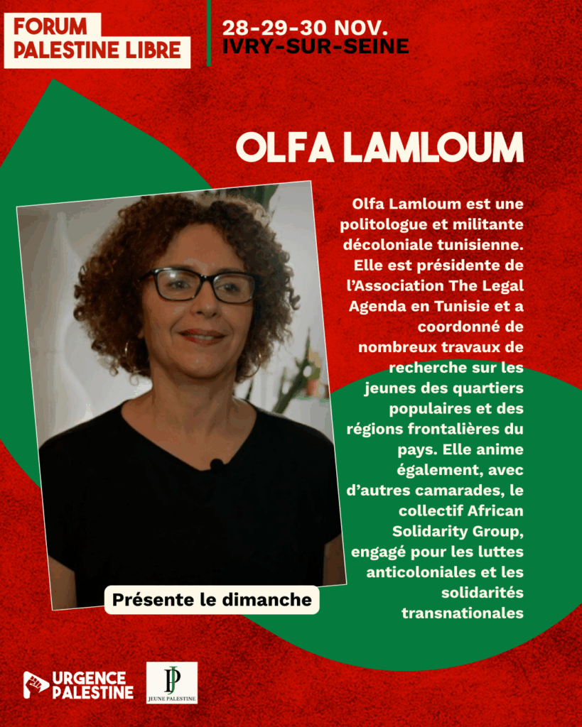 14h-15h30 Atelier « Comment briser le blocus » avec Olfa Laloum, Raouf Farrah, Thousand Madleen et International Forum (Danemark)